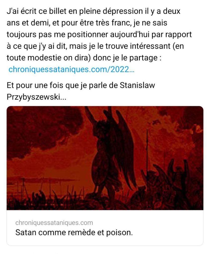 Sur le même sujet, confèrent mes autres billets « Le satanisme rend-il bon ou mauvais? » et « Contre l’Église catholique« .